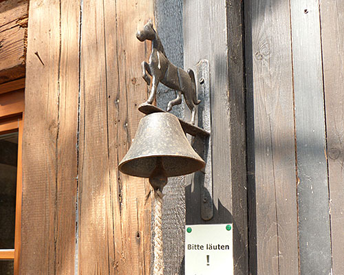 Wenn sich bei Ihrer Ankunft niemand im Gästebereich aufhalten sollte, läuten Sie bitte an der gußeisernen Glocke, die neben der Eingangstür der Gaststube „REITERSTÜBCHEN“ angebracht ist. So machen Sie auf sich aufmerksam – und wir bedienen Sie gerne.