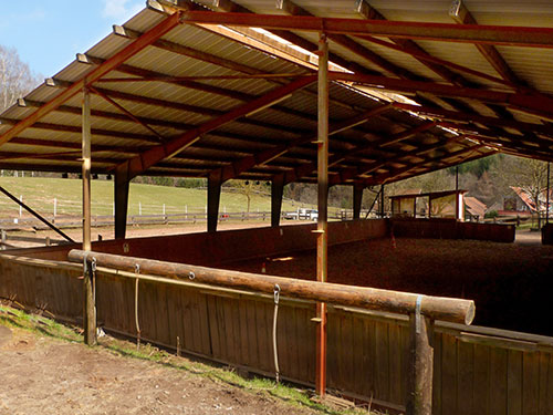 Unser Hof bietet durch seine Lage Pensionspferden einen ruhigen Aufenthalt und jede Menge Auslauf auf schönen Waldkoppeln. Pferdebesitzer können mit ihrem Pferd direkt vom Stall aus losreiten ohne Straßen überqueren zu müssen. Rings um den Meiserhof erwarten sie idyllische, abwechslungsreiche Reitwege und im Sommer ist ein Bad im Weiher beim Hof eine tolle Erfrischung für Beide.